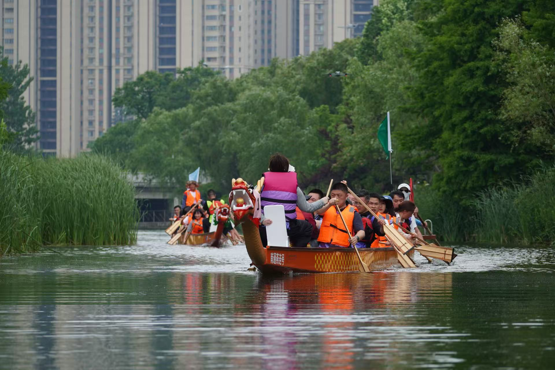 比赛过程中,各支队伍你追我赶,竞争激烈。有的队伍起初稍显落后,但队员们毫不气馁,迅速调整节奏,凭借着顽强的毅力和默契的配合,逐渐迎头赶上;有的队伍一马当先,始终保持领先优势,展现出强大的实力。在龙舟竞技中,队员们深刻体会到了团队合作的重要性。只有心往一处想,劲往一处使,听从指挥,相互配合,才能让龙舟快速前进。每一次划桨的力度、速度和方向都需要团队成员高度一致,任何一个人的失误都可能影响整体的节奏。